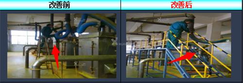 没有平台与护栏,员工搭人字梯操作存在安全隐患