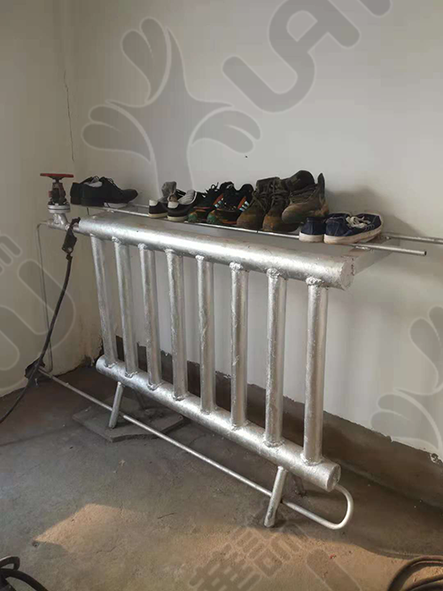 加装防护设施,保证人员在取暖过程中不会造成人员伤害且洗过的鞋子、手套可以快速烘干