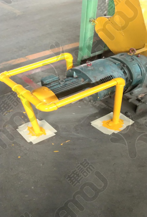 增加电机防护支架,用螺栓固定在地面上,方便拆装。消除安全隐患